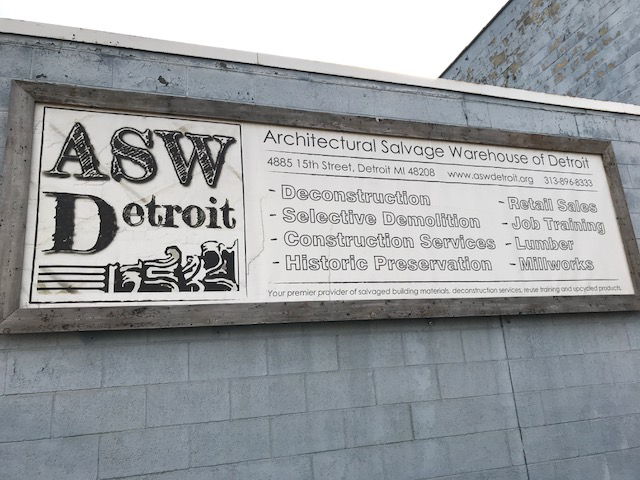 This week, I’m writing from Detroit, MI. Yes, Jeff Honnold, CJ’s tech guy, and I have been in the Motor City visiting a reuse nonprofit called the Architecture Salvage Warehouse (or ASWDetroit). We made the trip to see their lumber warehouse and wood shop. They are sharing information about their deconstruction operation, and value added products (in the reuse world, that means items that have been improved, or used to make other items) and we are sharing our experience with Reuse Retail, our inventory tracking system.