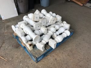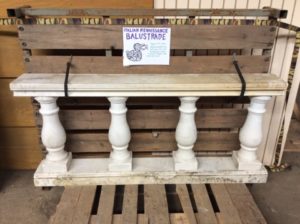 Italian Renaissance style marble balustrade. Approx 52 linear feet of top rail and base, with 52 balusters. We were very grateful to receive this really amazing example of architectural salvage! Our box truck crew was able to assist with a pickup from the donor. Our fantastic retail crewhelped the lucky customer load it up in order to head out to their destination with an amazing find destined for a new home.