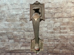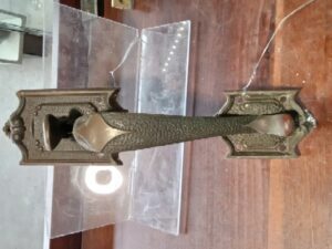 Elegant vintage door handle crafted from solid brass with intricate, ornate detailing. Perfect for adding a touch of timeless charm to doors, cabinets, or furniture. Durable, high-quality piece with a warm, polished brass finish..