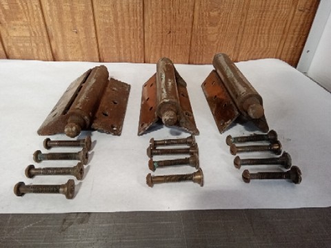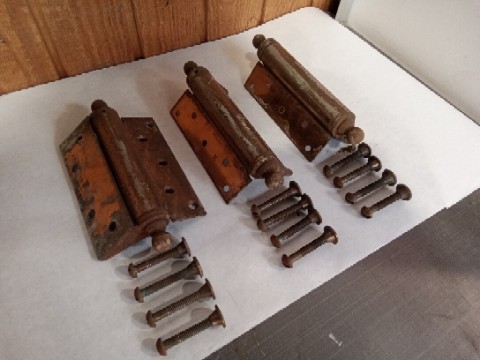 Antique Set of 3 Brass Bommer Double Spring Hinges