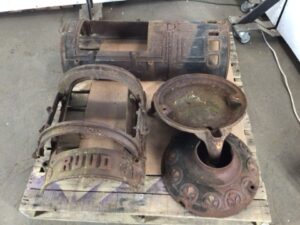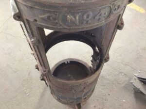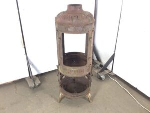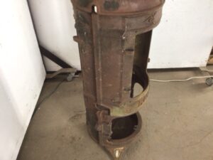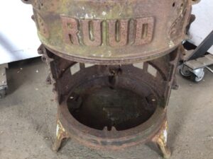Antique Ruud Cast Iron Water heater – rusted but doesn’t have too much deep pitting – unit doesn’t have doors but shelves could be added to turn it into a liquor cabinet or display shelf – water heater separates into 5 pieces making transport easier
