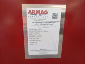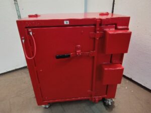 Retails for $2700. Indoor/Outdoor Explosive Cabinet – Type 2 -Comes with matched spray paint, two matching padlocks and instruction manual. Very heavy.