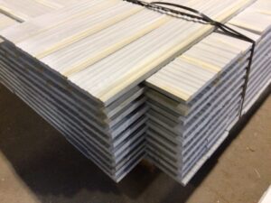 Ultra high-performance concrete panel, nominal size 6 in x 5 ft, featuring a grooved surface for enhanced texture. Grey in color, this panel is a surplus item, offering durability and a modern aesthetic for various construction applications.