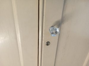 No key, glass knob, tongue and groove backed.