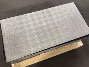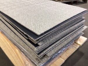 Used tans hounds tooth pattern carpet tile – pattern varies between tiles – tiles have some wear and left over adhesive on the back