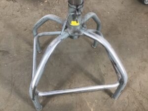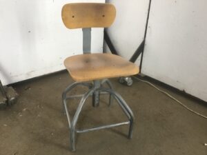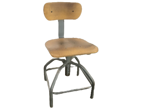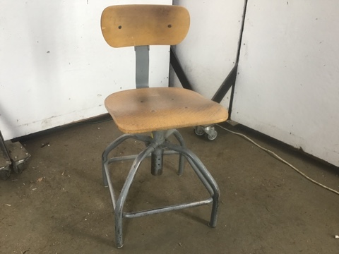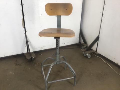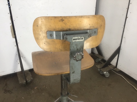 Original and fully functional , adjustable height, Bevco industrial four-legged tubular steel stool with intact backrest and saddle seat