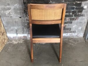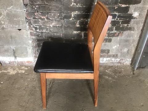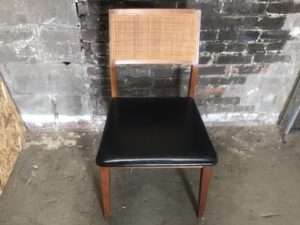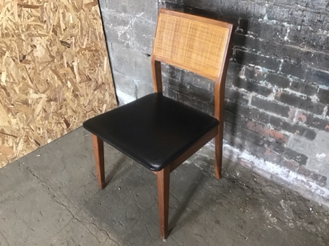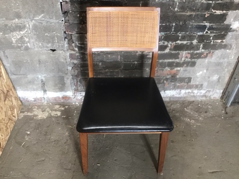 Hibriten Chair Company Mid-Century Chair – Walnut frame with cane back and leather seat. Classic MCM design with quality craftsmanship. A stunning vintage piece that blends style and comfort.