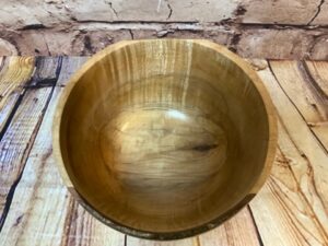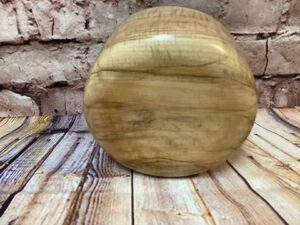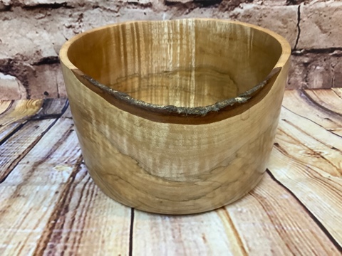Handcrafted in the CJ workshop – beautiful hand turned oblong wooden bowl. Made from a live edge unknown species – may have imperfections due to the nature of the wood and turning process..