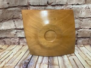 Handcrafted in the CJ workshop – beautiful hand turned wooden plate. Made from an unknown species of salvaged lumber- may have imperfections due to the nature of the wood and turning process..