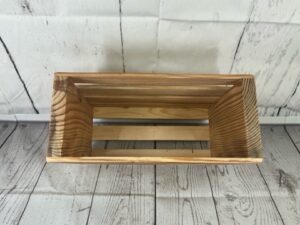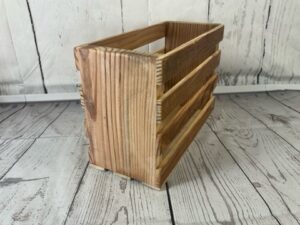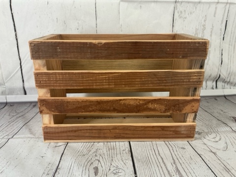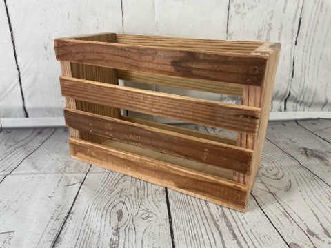 Handcrafted wooden crate made from vintage salvaged lumber in the Construction Junction woodshop. Sturdy, eco-friendly, and full of rustic charm—perfect for storage, display, or decor. Each piece carries unique character and history.
