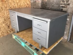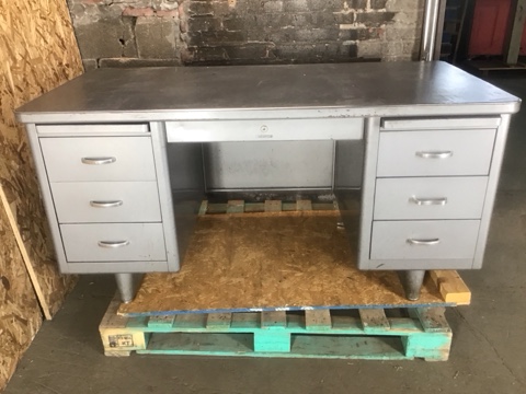 Steelcase Tanker Desk – Classic 6-drawer design in durable grey steel. Iconic mid-century industrial style with plenty of storage. Built to last and perfect for home office or workspace.