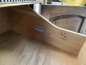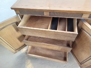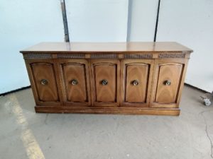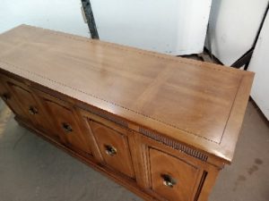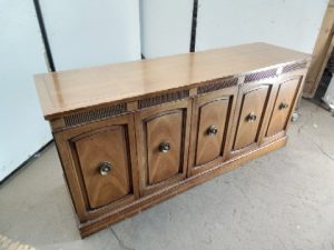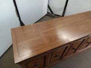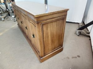 Vintage drexel triune sideboard – marked genuine mahogany – 4 interior drawers – has some scratches and finish wear