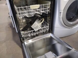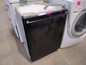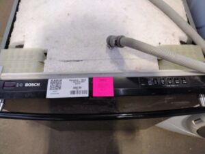 Black front undercounter electric dishwasher by Bosch, with steel interior