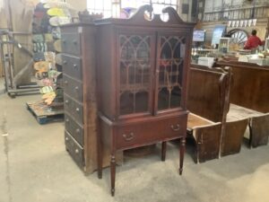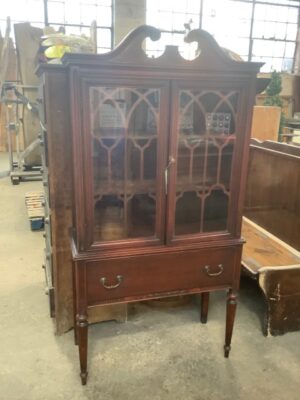REDUCED Vintage Wood China Cabinet, 1 Door w/Drawer on Casters