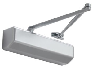 Stanley brand D-4551 multi-sized 1-5 door closer with standard hold open arm. For standard, parallel arm or top jamb mount applications. R-14 silicon aluminum housing with forged arm, fully hydraulic. Surplus item, never previously installed. MSRP $239.