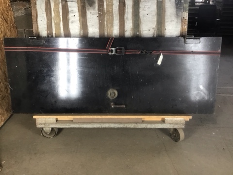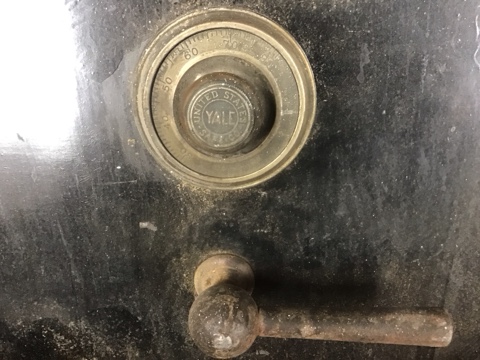 Vintage Yale safe door made from heavy-duty plate steel—industrial strength with striking character. Door only (no combination). Measures approx. 28″ W x 76″ H. Ideal for architectural salvage, wall décor, or unique design repurposing.