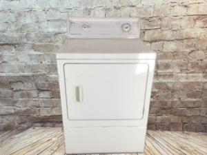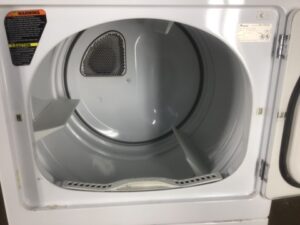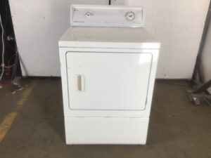 Amana electric dryer, white, with 3 cycles. Untested sold, as is. Ideal for parts or repair projects. Model in unknown working condition.