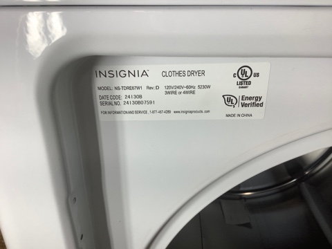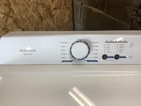 Dryer – Insignia – NS-TDRE67W, Electric, Sensor Dry, White. Refurbished by Appliance Warehouse. Includes limited AW warranty. Reliable performance with moisture-sensing technology for efficient drying.