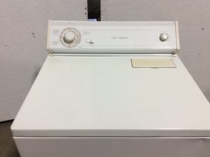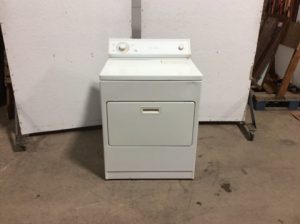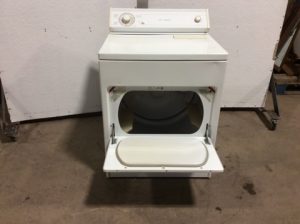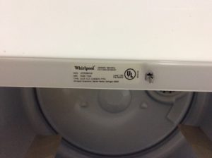 Appliance Warehouse refurbished Whirlpool white front load electric dryer, model LER5600HQ0. Dial controls, top lint trap, bottom hinged door, enamel drum. Appliance Warehouse offers 60 day warranty on parts/labor, must register with AWh.