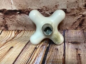 Vintage Cross-Shaped Waste Knob in classic white porcelain with a 3/8″ stem opening. Perfect for restoring antique fixtures or adding a retro touch. Durable, timeless design complements vintage and modern styles alike.