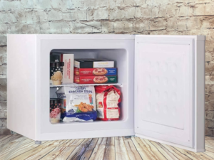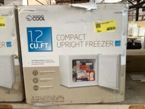 Commercial Cool 1.2 Cubic Foot Freezer (model CCUK12W) in white, perfect for compact spaces. Includes Appliance Warehouse Warranty. Brand new in box—reliable and ready to use!