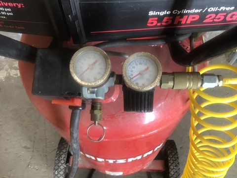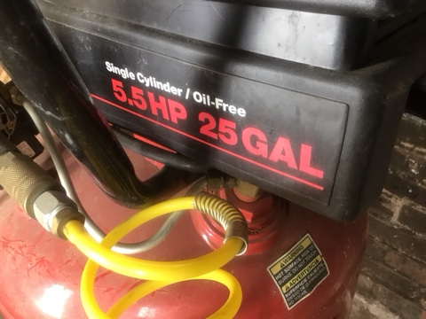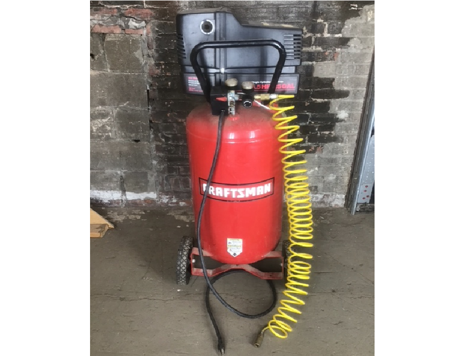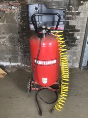 Craftsman 25 GAL Air Compressor with 5.5 HP motor. Tested and works well. Reliable, heavy-duty performance for garages, workshops, and home projects. Great for powering air tools, inflating, and general shop use.