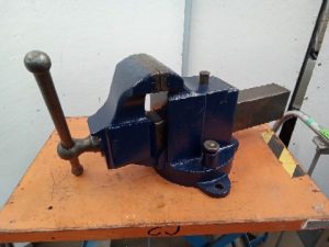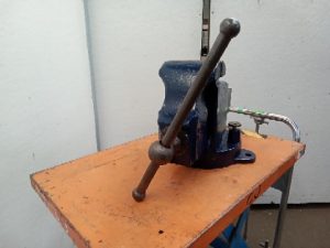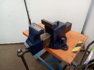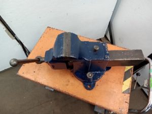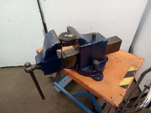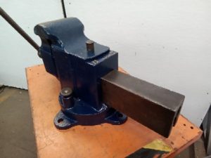 Vintage prentiss no 22 Vise. The Vise opens 12 inches when bolted down and has jaws that are 6 inches wide. It weighs 150 pounds. Used to have a rear swivel Jaw but a previous owner broke it and brazed it in place.
