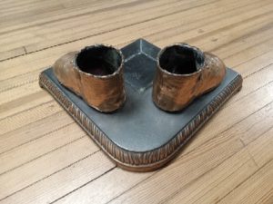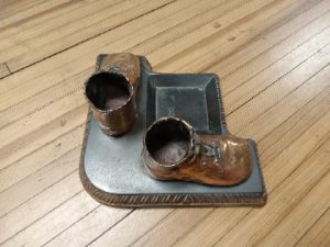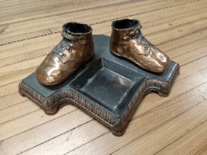 Bronzed Baby Shoe Ashtray Holder – missing square glass ashtray