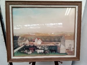Replica framed print of Leedom Farm by Edward Hicks is a classic piece of folk-art. Features a peaceful farmscape that reflects a message of family, kinship, and the history of the farm.