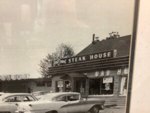 Framed print of Bob Evans Restaurant in Mars, PA, 1950s. A charming vintage piece capturing mid-century Americana, perfect for collectors or decor enthusiasts seeking nostalgic artwork.