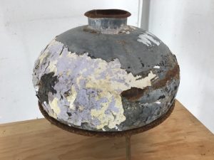 Nagori Tribal Pot with stand – this pot would make a unique decor piece in your home or garden – the stand is rusty and the pot has some rust and peeling paint