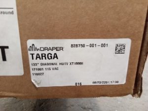 In original shipping box. As Is. Draper 116022 Targa 133 diag. (65×116) – HDTV [16:9] – Matt White XT1000E 1.0 Gain – Partial proceeds benefit The Blessing Board. MSRP $1,437.00