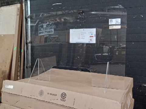 Displays2gp acrylic Sneeze guard with transaction slot and easy dissasembly. Guards are new in box