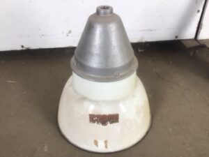 Explosion-proof vintage industrial shop light by Devilbiss & Crouse-Hinds. Durable, rugged design for tough environments. Perfect for workshops, garages, and industrial spaces. Authentic, collectible lighting with a classic vintage appeal.