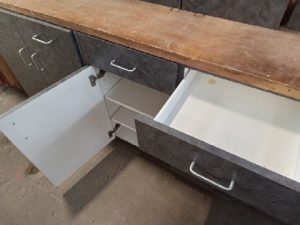 Particle Board Construction, Commercial Grade Finish and Hardware. 5 base units, 6 wall cabinets