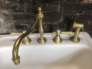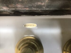Kitchen Sink – Kohler – Single Bowl – Cast Iron. Includes premium Newport Brass Faucet with sprayer. Durable and classic design. Overall good condition – perfect for kitchen upgrades or remodels.