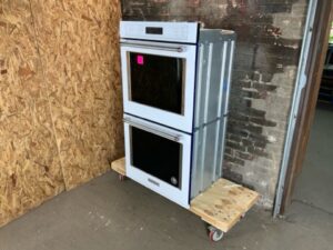 KitchenAid Electric Double Oven KODE507EWH (2020 model). Sleek white built-in design with spacious double capacity. Untested, sold as-is—great value. Perfect upgrade for your kitchen.