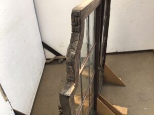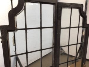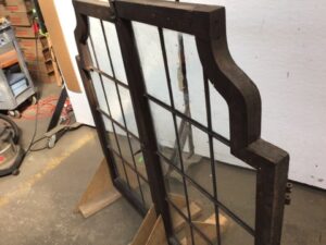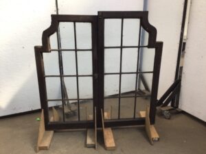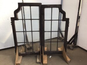 Leaded Glass – Arched Window Pair Oak w/ Brass Hardware (Cracked)