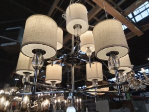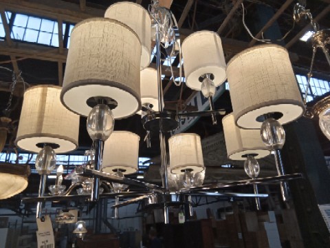 Tiered, Chrome, Chandelier. Some shades have discolored