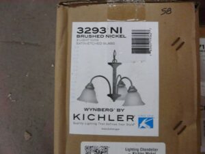 Kichler Wynberg Collection, brushed nickel 3 light chandelier. New in box, never previously installed. MSRP$ 149.99 (bulbs not included)