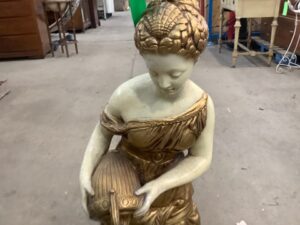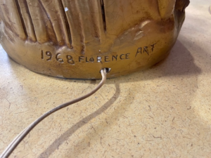 Vintage Table Lamp – Florence Art, 1968 – Roman Woman with Pitcher – Chalkware, untested, no shade – Shows some wear, adding to its antique charm. Perfect for collectors or vintage décor lovers!