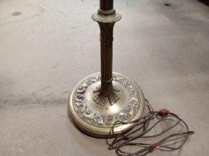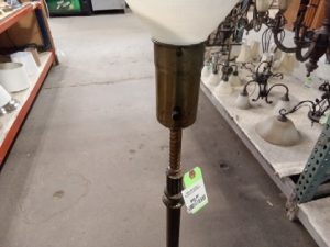 Vintage torchiere lamp three way mobile base bulb. Height dimensioned to top of bulb receptacle, dimension does not include globe.