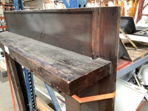 Classic craftsman style pine mantel. Large opening with single shelf. Shows some wear, but can easily be brought back to glory.