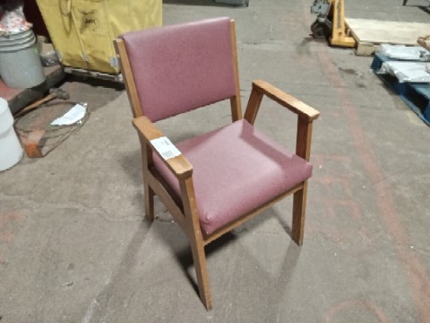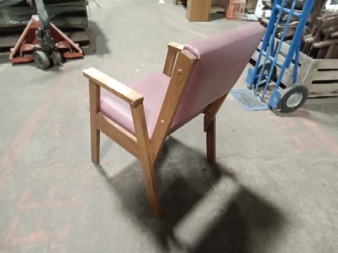 Four foot oak Frame Cushioned Chair, non porous material, cushions are maroon colored