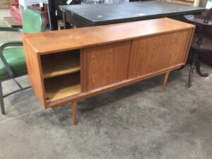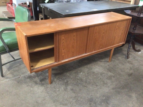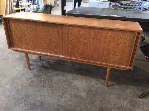MCM Teak Veneered Sideboard w/Sliding Doors