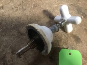 Vintage Republic Porcelain Cross Knob with Valve & Escutcheon – Waste. Large size, classic design. Cross measures 3-1/2″ across, 3/4″ thick. Perfect for vintage or restoration projects. Timeless porcelain charm with durable construction.