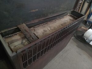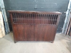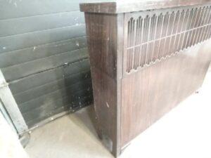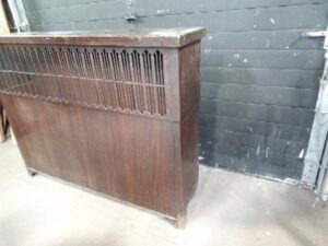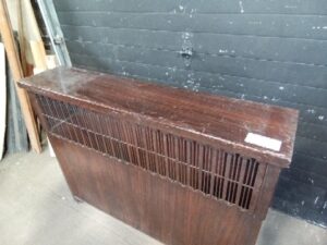 Vintage metal radiator Cover with Faux Wood finish and hinged top cover – has some rust inside and at the base 54 w x 41 h