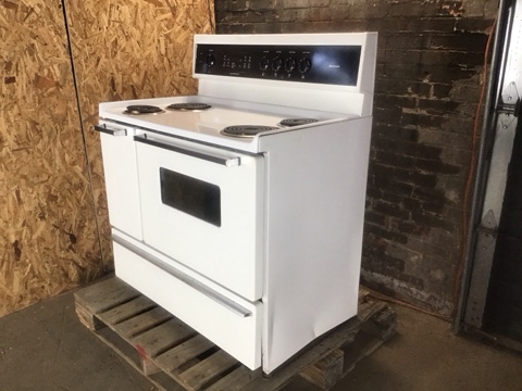 Frigidaire 40″ Electric Range with 4 elements and double oven in white. Gently used and in good condition. Reliable performance and spacious cooking area. Ideal for any kitchen upgrade.