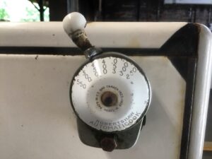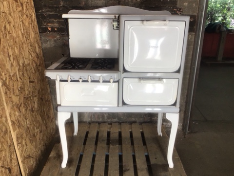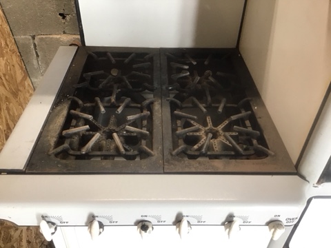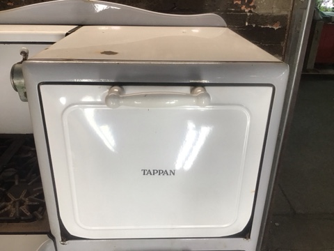 Vintage Tappan Skelgas Range – Classic white and grey finish with 4 burners. A charming piece of mid-century kitchen history. Untested, sold as-is. Great for restoration or display!