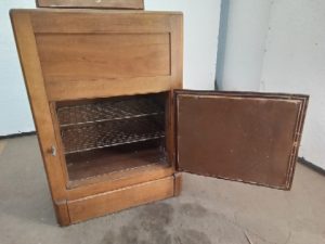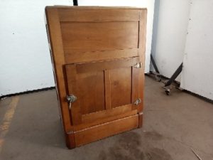 This Antique ice box or cooler is constructed from solid oak and was the refrigerator of the late 1800s and early 1900’s.